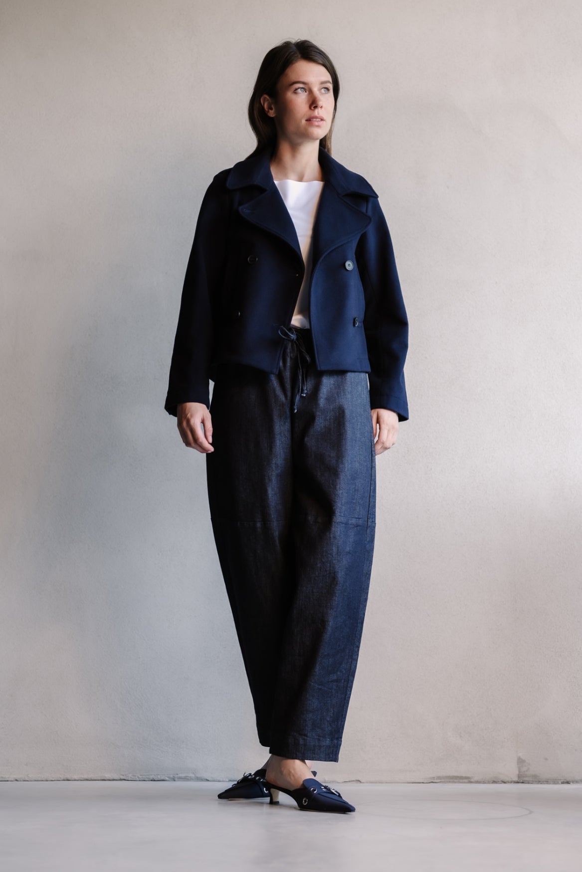 - Double-breasted cropped caban met grote kraag