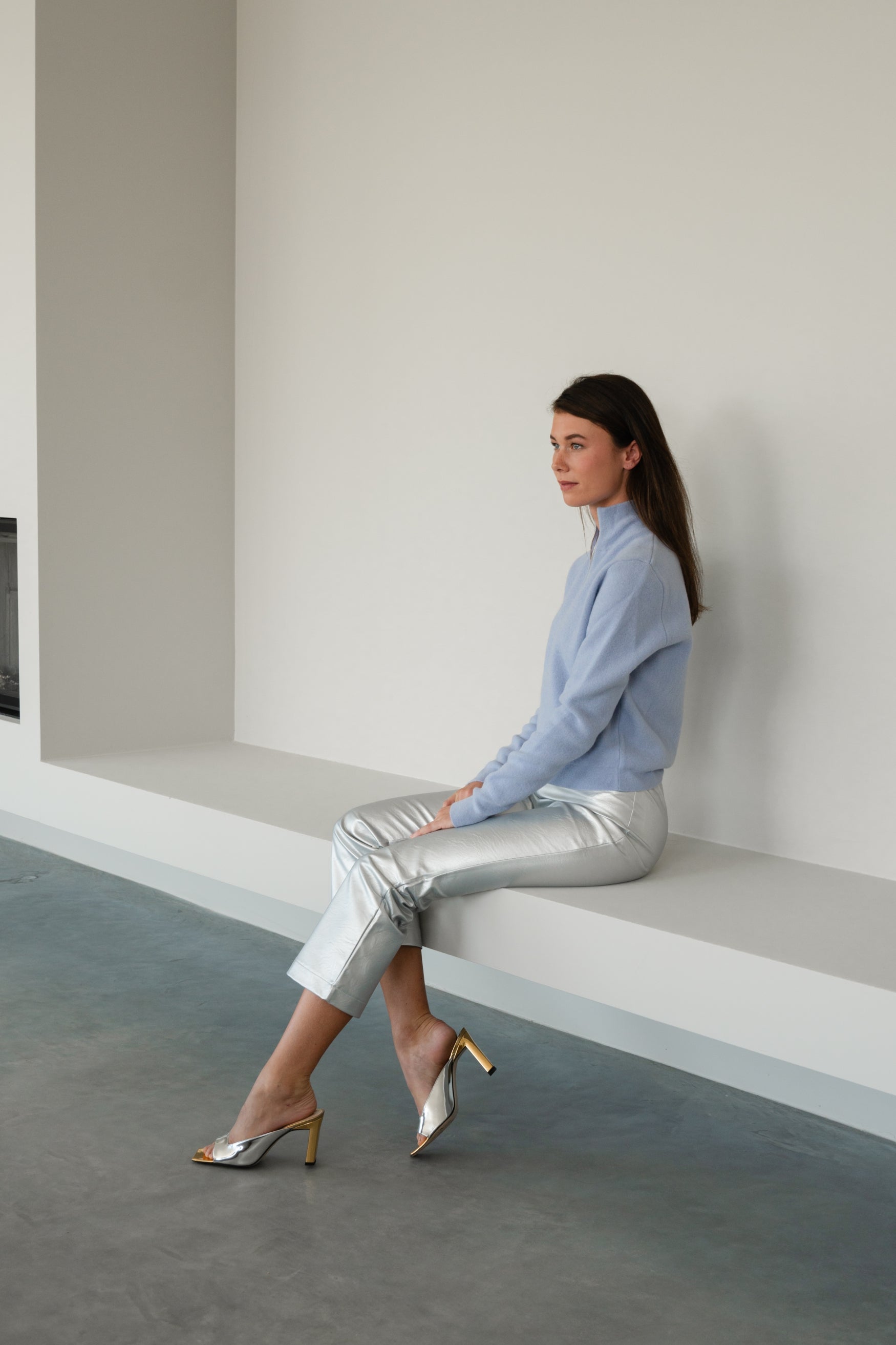 Met haar verfijnde silhouet en glanzende afwerking vormt de Britney een stijlvol alternatief voor klassiekere broeken. Perfect te combineren met een oversized blouse voor een moeiteloze en gelaagde outfit.