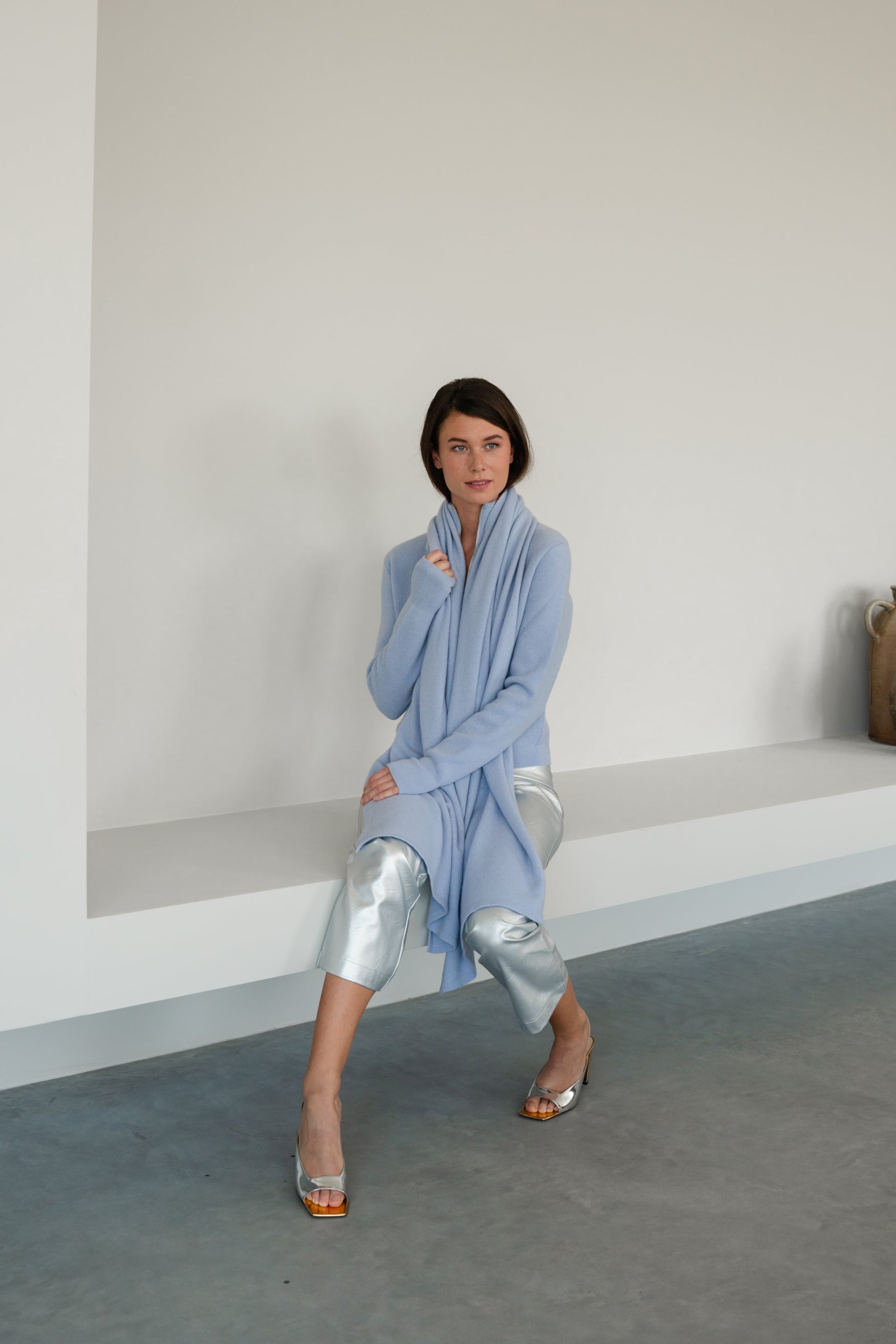 De Do is gebreid met een elegante, naar binnen geslagen zoom voor een subtiel en verzorgd effect. Dankzij het langgerekte silhouet kun je haar moeiteloos op verschillende manieren stylen: losjes gedrapeerd, nonchalant geknoopt of klassiek omgeslagen.