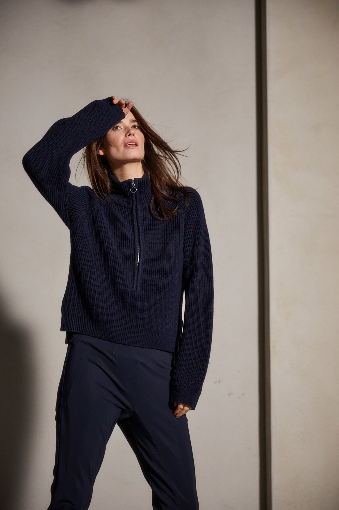 Op de foto is de Jolie Pullover zichtbaar. De Jolien Cardigan heeft een rits over de gehele lengte van de voorzijde.
